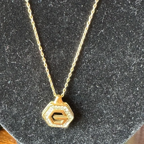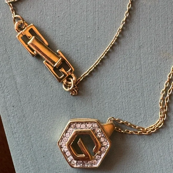 Givenchy Vintage Hexagon Rhinestone G Logo Necklace