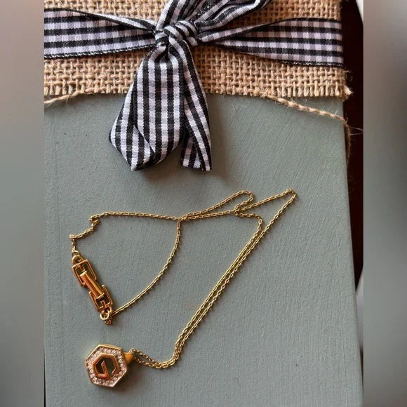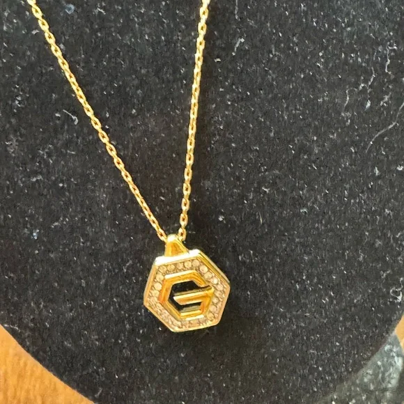Givenchy Vintage Hexagon Rhinestone G Logo NecklaceA beautiful vintage 80-90’s piece from Givenchy. Featuring a gold-plated Hexagon Rhinestonewith the G logo. Current necklaces...