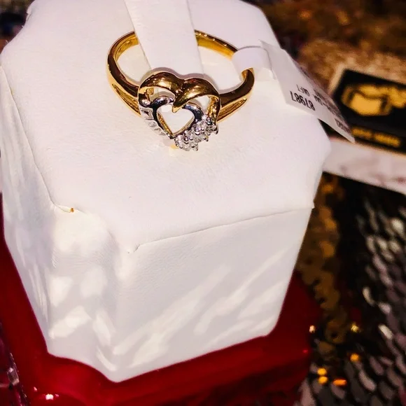 Make her heart melt with this stunning personalized real diamondheart ring.Comes packaged in a beautiful gift box and bag ready to gift.Let us take the load of gifting off your hands.Not czNot moissanite Not lab madeNot simulated Comes w certificate of authenticity cardFree led ring box Free jewelry cloth to clean jewelry Barcode87987Ring Size7Metal Type10k gold vermeil on genuine Italian 925 Sterling SilverApprox. Gram Weight1.95Total Gemstone Carat Weight.03Primary Gem TypeDiamondPrimary Gem ShapeRoundPrimary Gem ColorG-HPrimary Gem ClarityI2-I3Primary Gem SettingProng-setChristmasPromise ringEngagement men bandWedding ringChristmas giftBlack Friday saleBirthday giftAnniversary presentMother’s Day gift