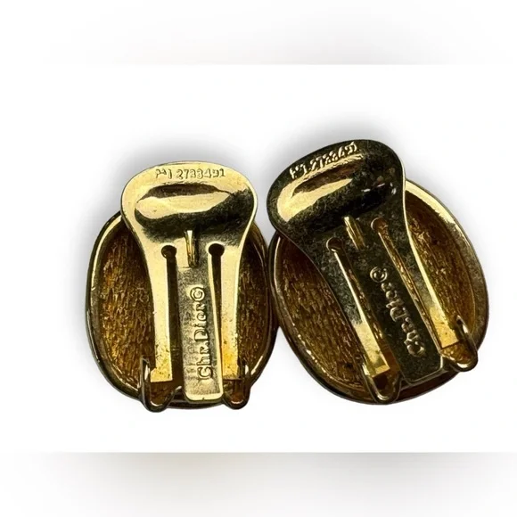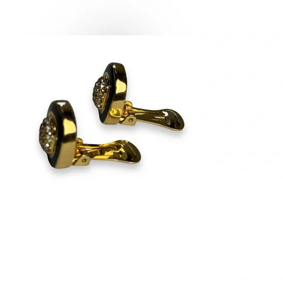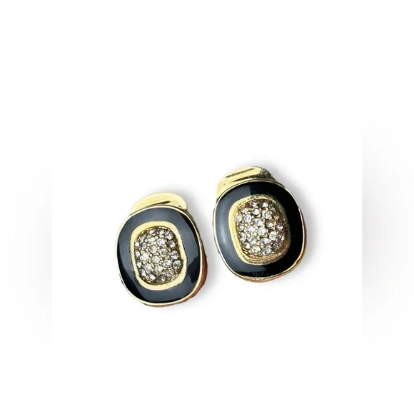 Elegant and chic vintage Christian Dior black enamel and rhinestone clip on earrings. Perfect addition to a LBD or to add some sparkle at work. Approximately 5/8” in length. In excellent vintage condition.