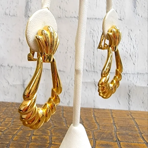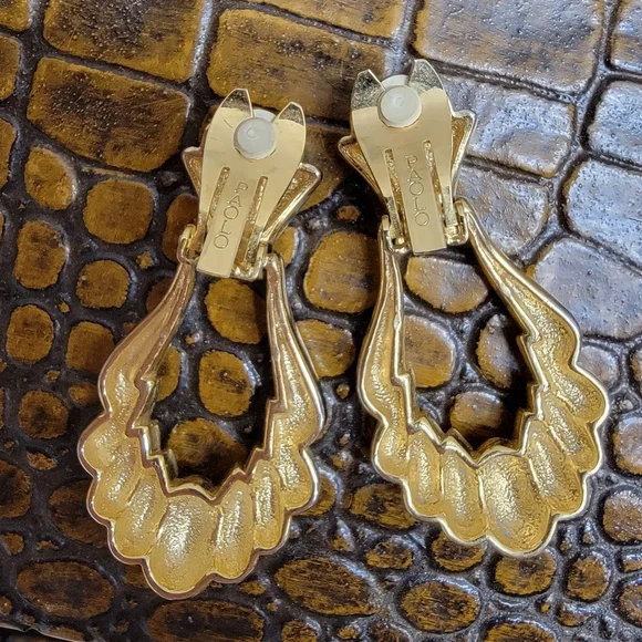 Vintage Paolo Sea Shell Signed Rare Door Knocker Luxurious Earrings