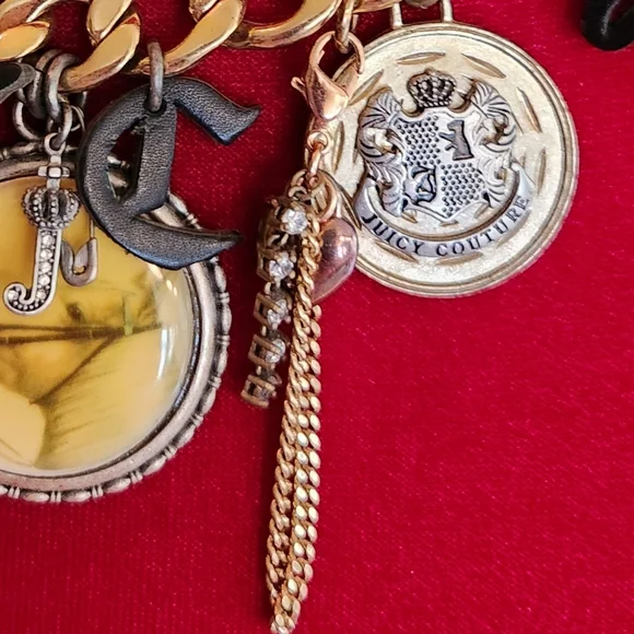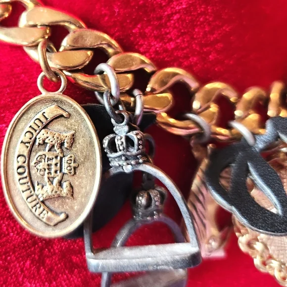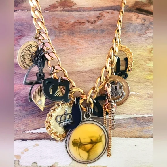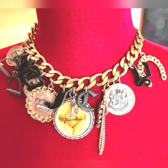 EUVC by JUICY COUTURE Purchased in Y2k Loads of interest & detailsCountry Western Vibe Horsey Equestrian MotifHorseshoes JC Hanging InitialsSpurs, Charms, Disks, CoinsChunky 16" Wide Gold Chain Easy Toggle Closure w JC logoPlease see all pix, zoom in & read description! tysm♡♡♡Has been stored in JC pink satin drawstring pouch!Ships Now! Boxed w ♡!