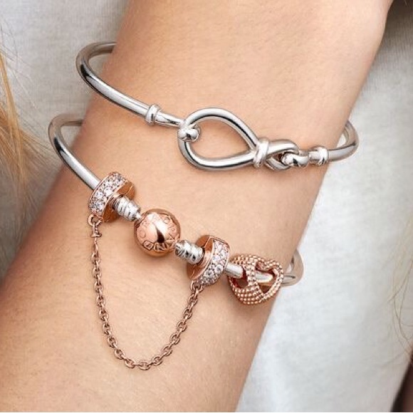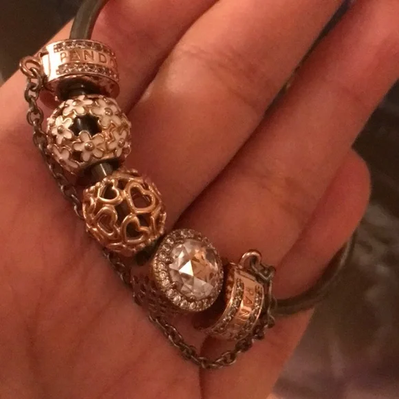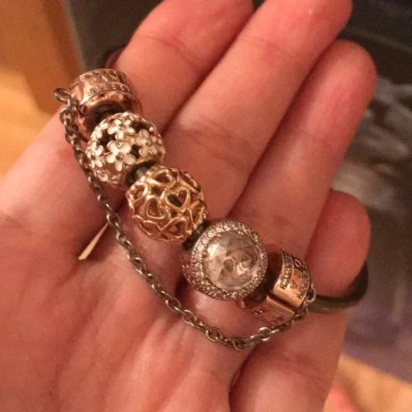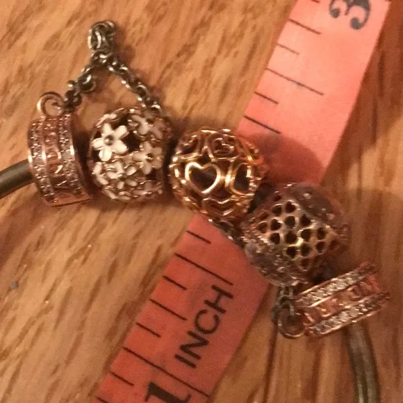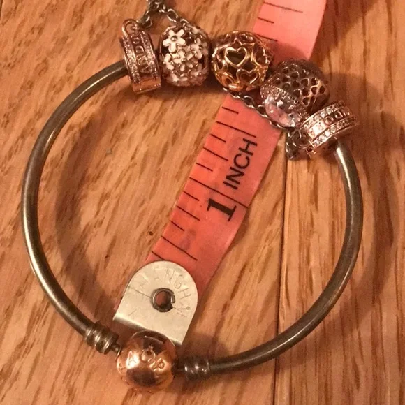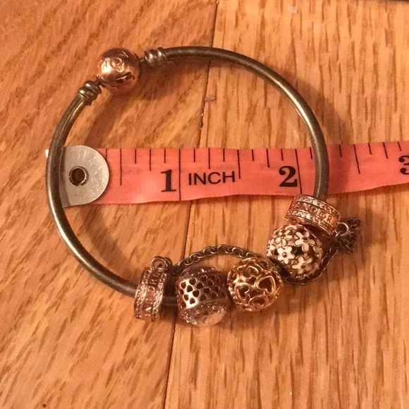 Pandora Rose Gold and Silver Moments Bangle with Charms!