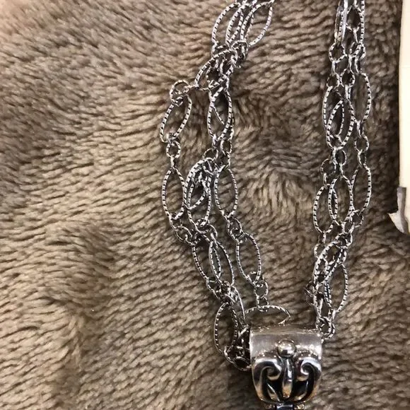 BARSE Sterling Silver Agate Pendant w/ Triple Strand Open Link Necklace NWT