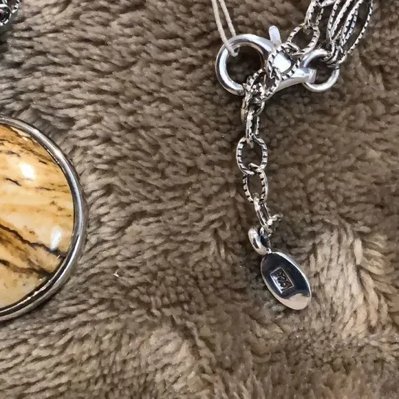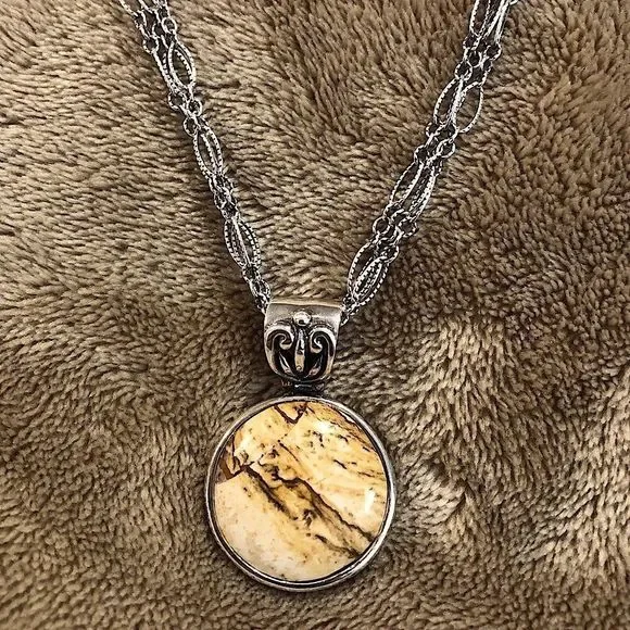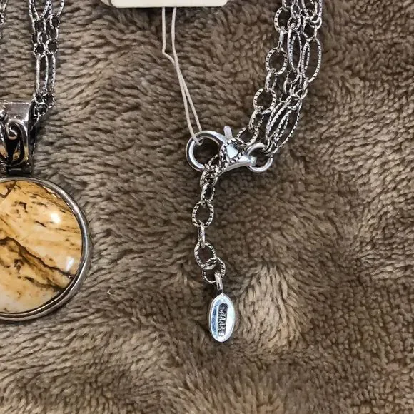 BARSE Sterling Silver Agate Pendant w/ Triple Strand Open Link NecklaceBARSE Sterling Silver Triple Strand Open Link NecklaceIncorporated ExtenderLobster Claw ClaspMarked: Barse, 925BARSE Sterling Silver Golden Sand Agate Pendant Round Cabochon Agate Set Off By Sterling SilverMarked: Barse, 925Bale Well AdornedNWT- New With TagsGreat Piece to Wear With Silver Or GoldAsk Questions and/or Request Additional Photos, Measurements as NeededColor May Vary Based On Shadows, Lighting, Monitor, Display Settings $228