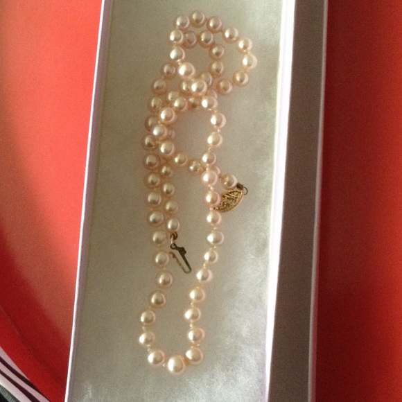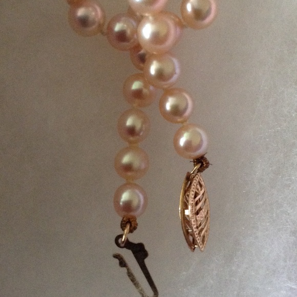 Beautiful pink pearl necklace hand knotted with 14kt gold clasp