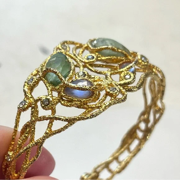 Alexis Bittar Elements Mauritius Gemstone Crystal Golden Lace Cuff Bracelet