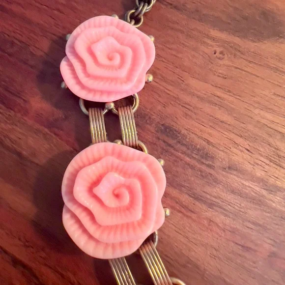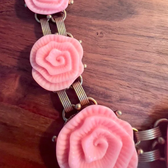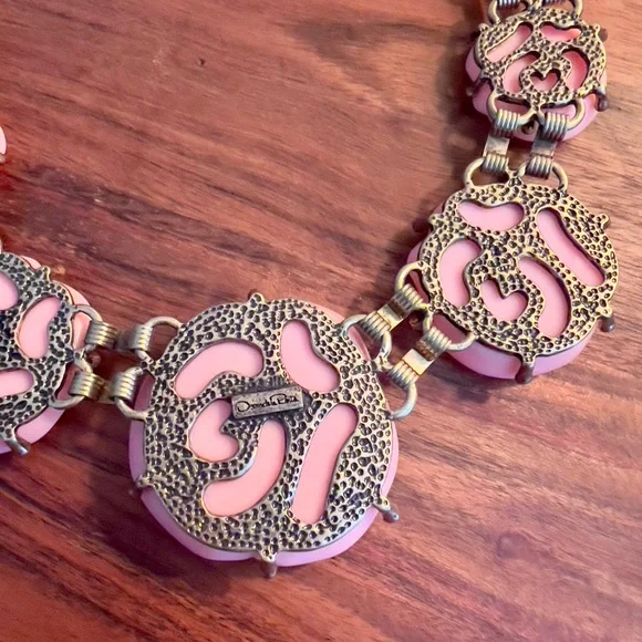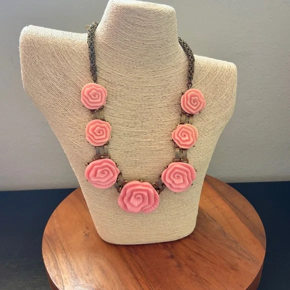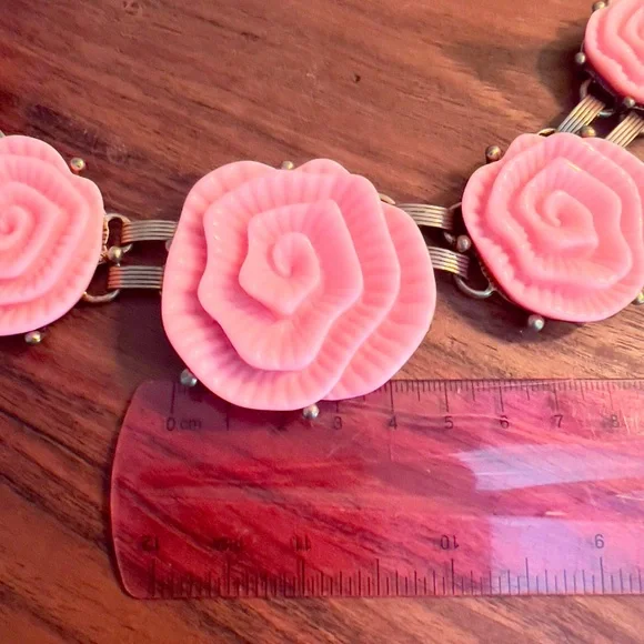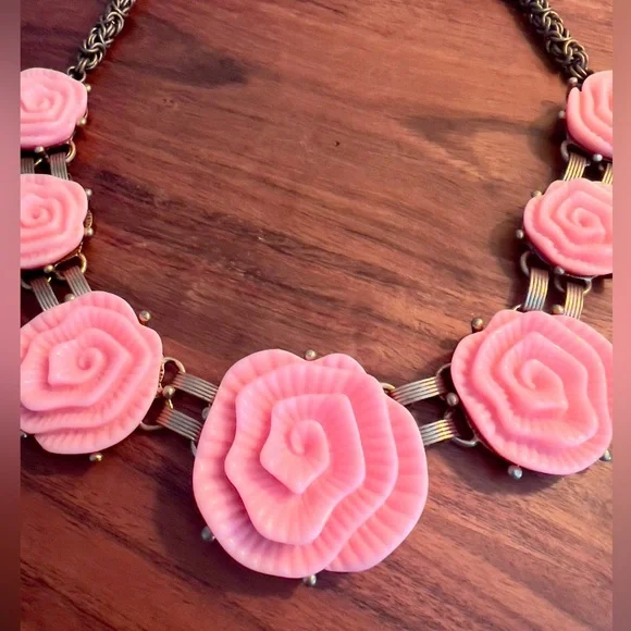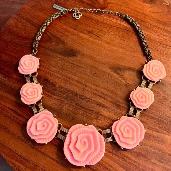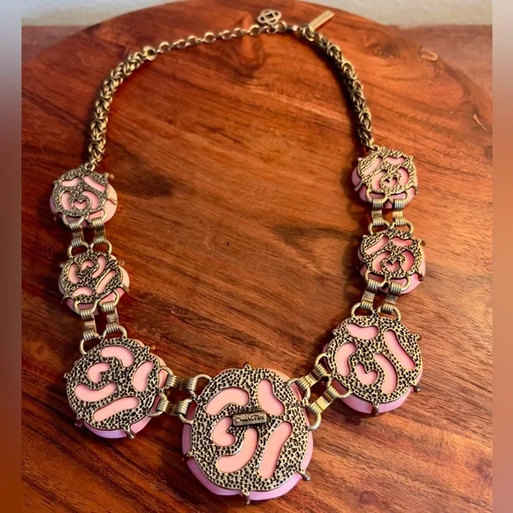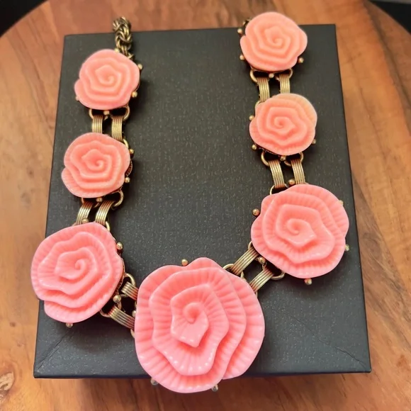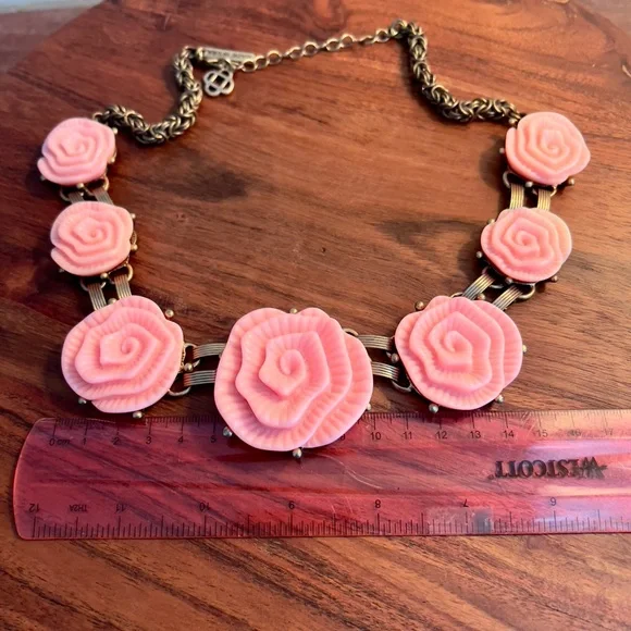 NWOT Vintage Oscar De La Renta Pink Camellia Flower Regal Necklace