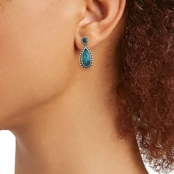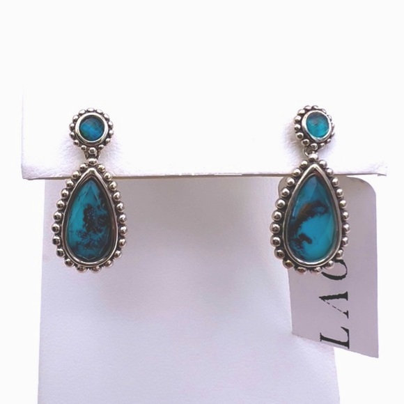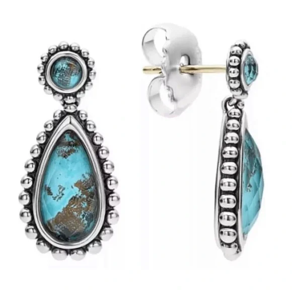 Brand New with Tags LAGOS Maya Teardrop EarringsFrom Lagos Signature Caviar CollectionFeaturing round and pear-cut Chrysocolla Aqua Blue Doublets Earrings measure 1” x 1/3”Set...