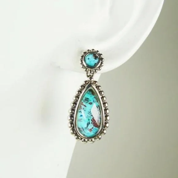 Brand New with Tags LAGOS Maya Teardrop EarringsFrom Lagos Signature Caviar CollectionFeaturing round and pear-cut Chrysocolla Aqua Blue Doublets Earrings measure 1” x 1/3”Set in 925 Sterling Silver with signature caviar beading14K Yellow Gold Posts and Butterfly fastenersRetiredMSRP $400 + taxComes with Lagos pouchNext day shipping