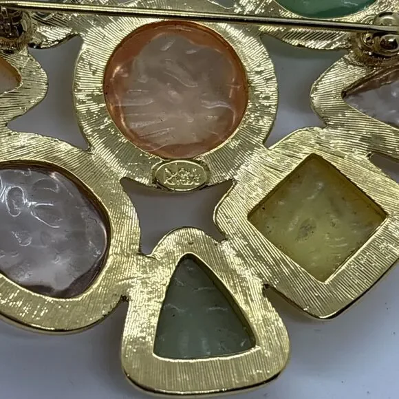 Joan Rivers Gripoix Style GOLD TONE Pastel Jelly Maltese Cross Brooch PIN Signed