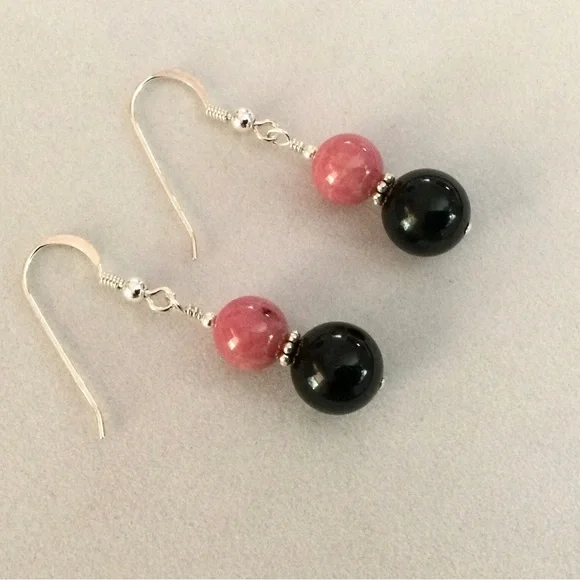 Rhodonite & Black Jade Stackable Bead Bracelet - Unisex Design and Sizing - c 132 tcw 5 Star Natural Mineral Gemstones. Unisex Rhodonite & Black Jade Bead Bracelet - 8mm UDSSR...