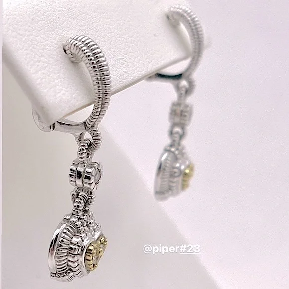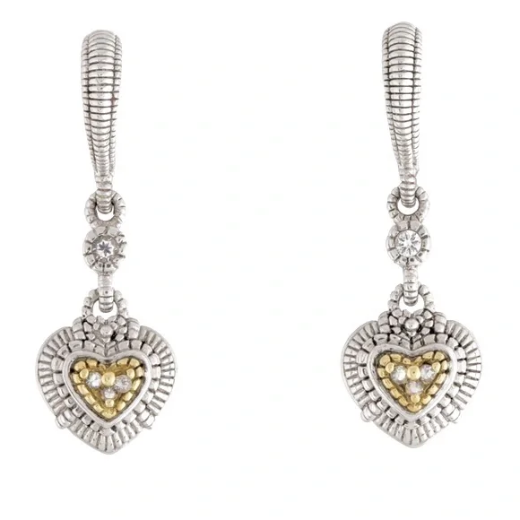 Judith Ripka JR TWO Sterling Silver 18K Gold Diamond Heart Drop Earrings