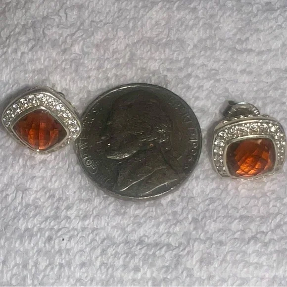 Add a touch of elegance with these stunning orange and silver stud earrings. Perfect for any occasion.