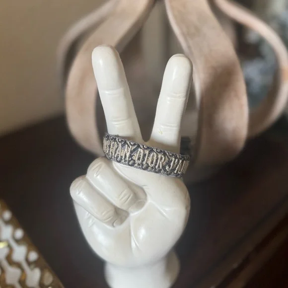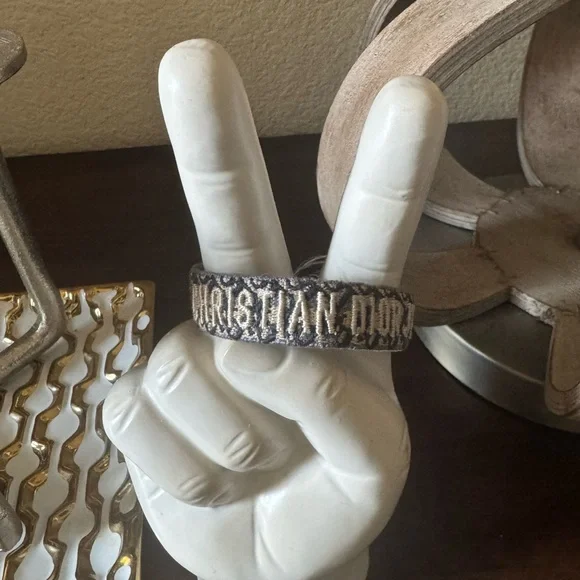 This bracelet is new without tags. Never used. Has been stored in my jewelry drawer. The Christian Dior signature adorns navy blue cotton, paying tribute to the iconic Dior...