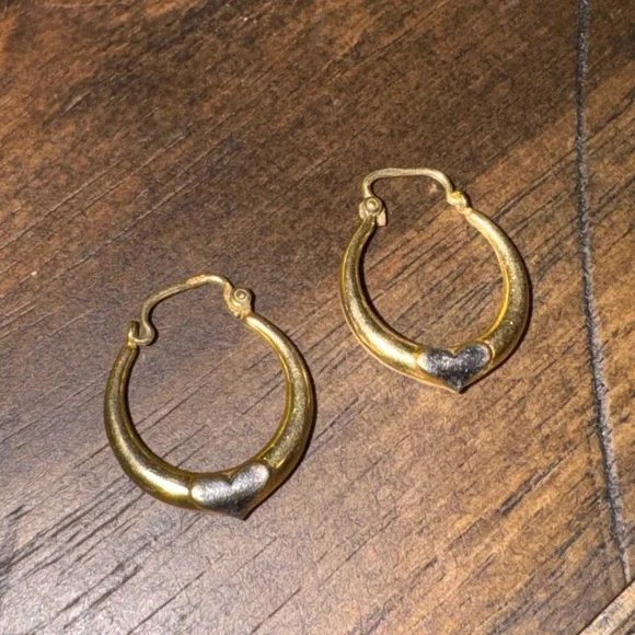 EUC 18K Yellow & White Gold Heart Hoop Earrings