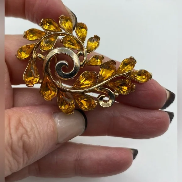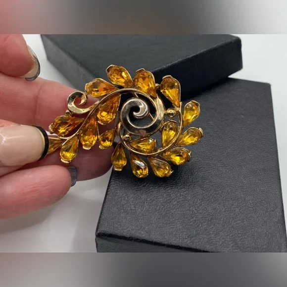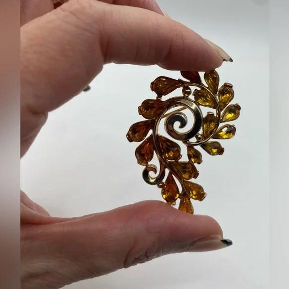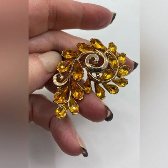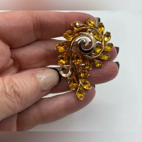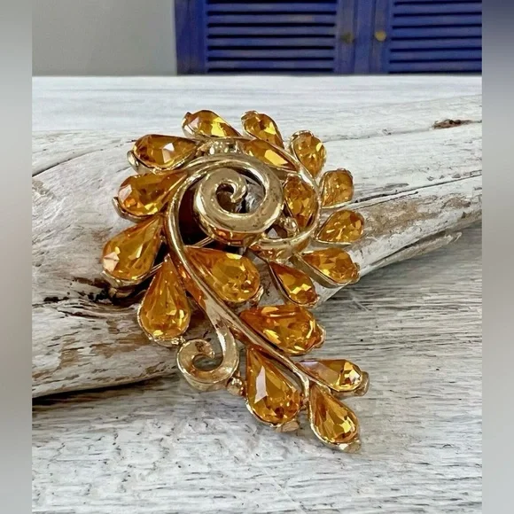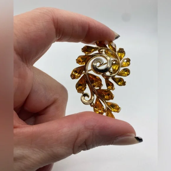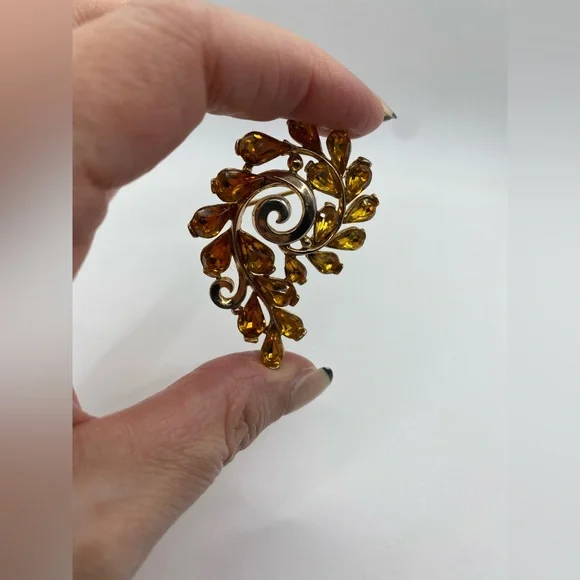 Trifari Alfred Philippe Gold Tone Swirl Citrine Brooch Rare