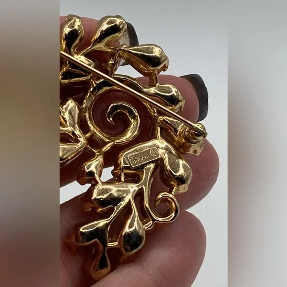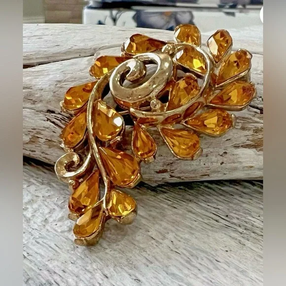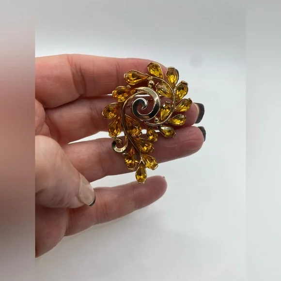 Trifari Alfred Philippe Gold Tone Swirl Citrine Brooch RareCitrine and gold have not been tested for authenticity Measuring approximately 2.25” x 1.5”Designed in the era of when Phillipe was at Trifari (1930-1968) although this name is not specifically stamped on this piece (his name was only on a few pieces, even though he designed most)This piece would have been designed in the 1955-1969 era judging by the Crown Trifari with © SymbolStunningly rare piece