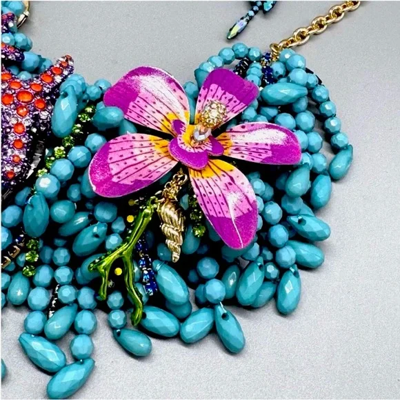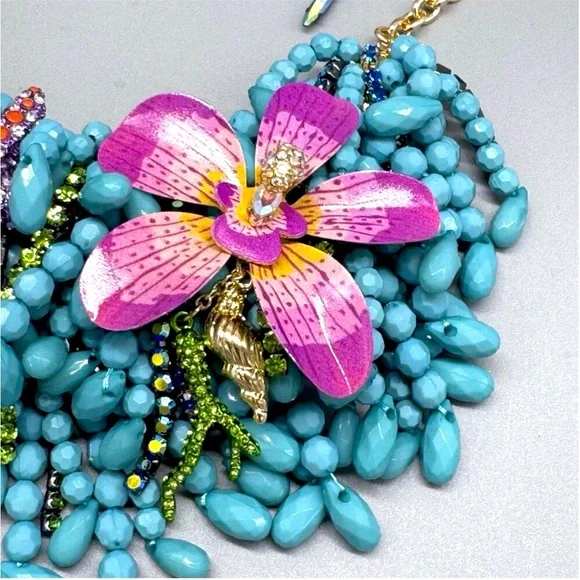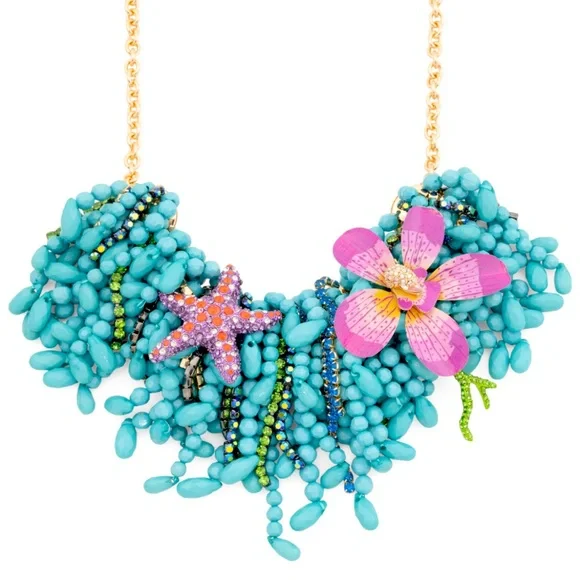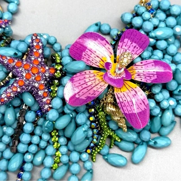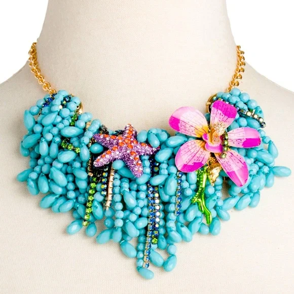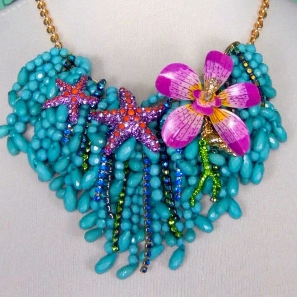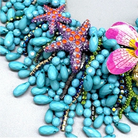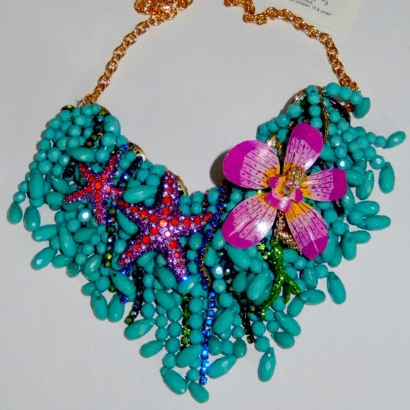New Betsey Johnson Floral and Starfish Statement Necklace