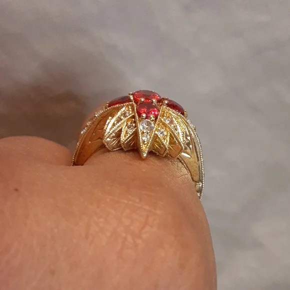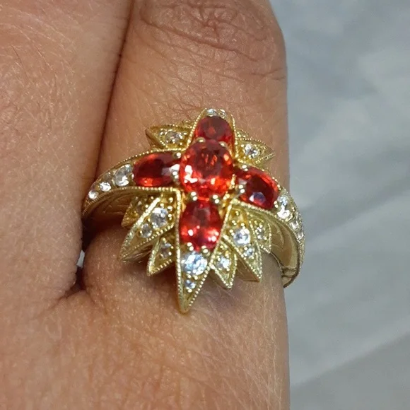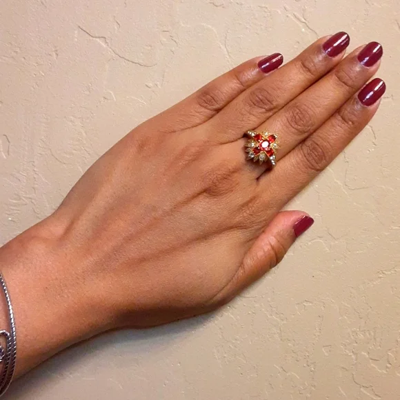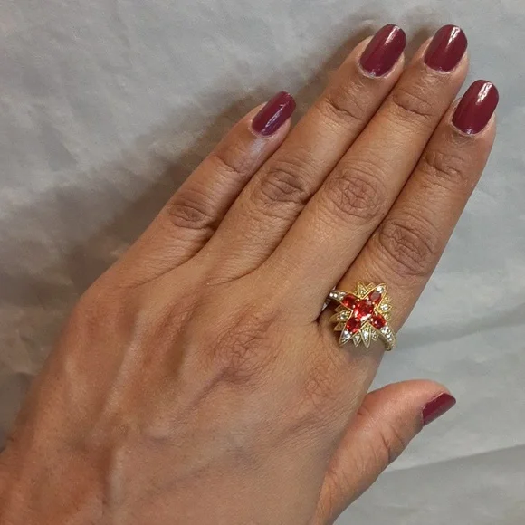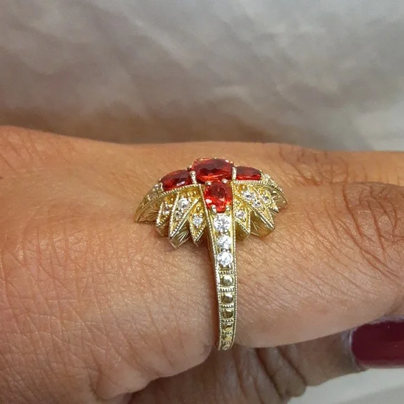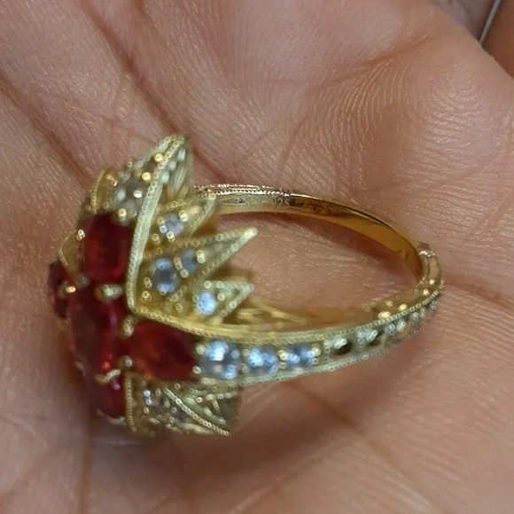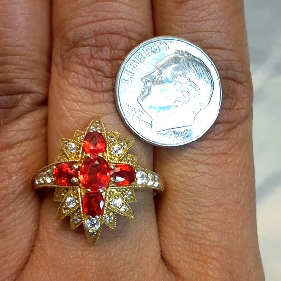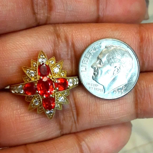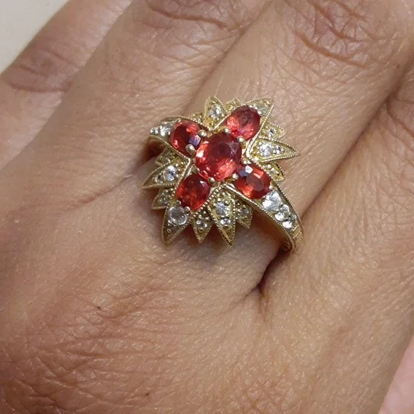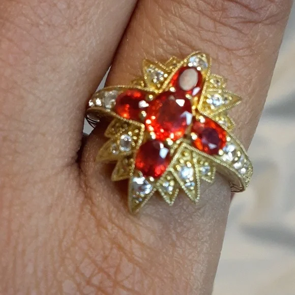Like New, Appraised for $742.00 in 2014. 22K Yellow Gold over Sterling Silver, Genuine Fire Sapphires and Natural Untreated White Zircons In a Star Burst Design....