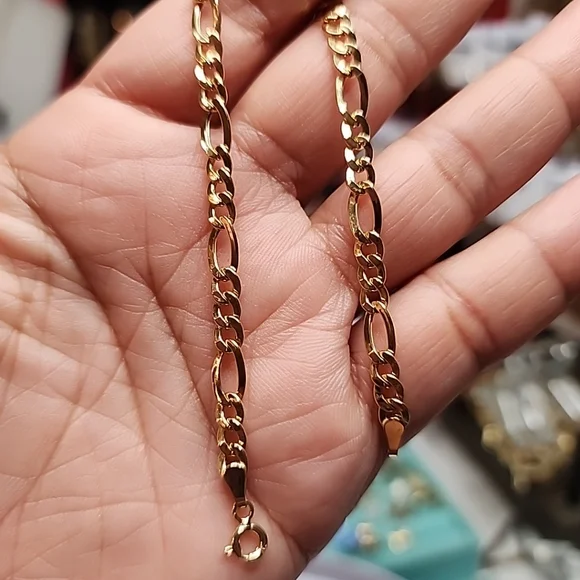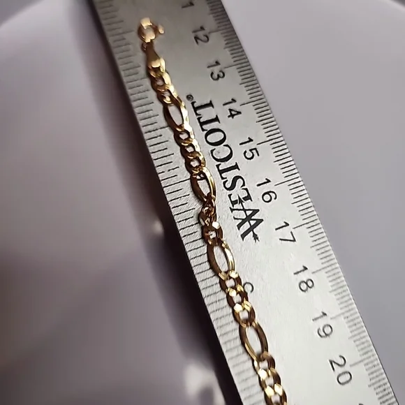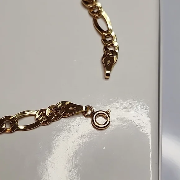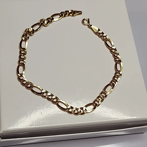 18k Solid Yellow Gold 4.5mm Figaro Link Bracelet Size 7.5" LIGHTWEIGHT NEW