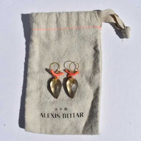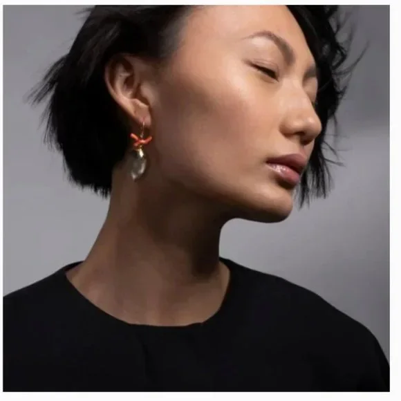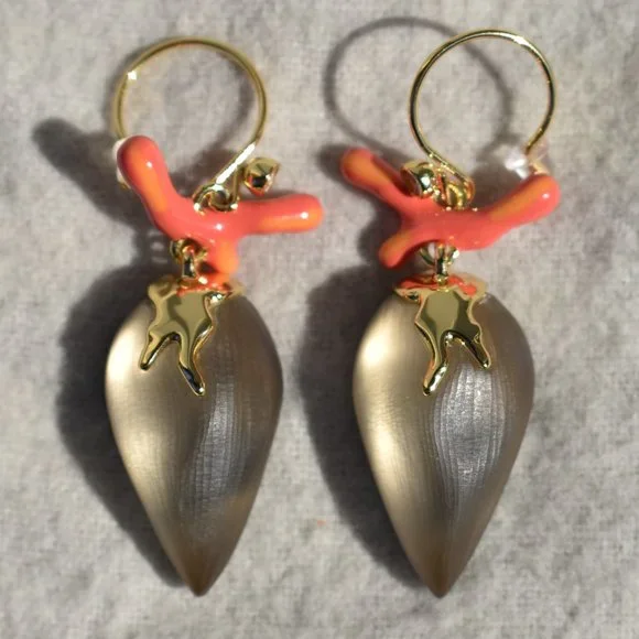 NWTAbsolutely Gorgeous!!!Details:A modern take on the symbolic motifs of the Victorian era, this drop earringfeatures lustrous enamel coral finished with a crystal accent and set atophand-carved Lucite drops. A must-have accessory for that next vacation.Hand-carved and hand-painted Lucite with 14k gold plated brass, enamel, andcubic zirconia, gold filled ear wireMeasurements: 3" length x .75" widthCare: to clean, gently wipe the surface with a soft cloth.Color: Warm grey