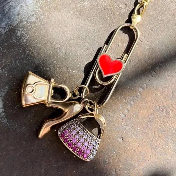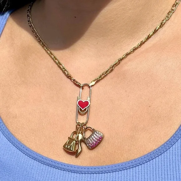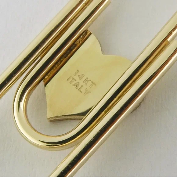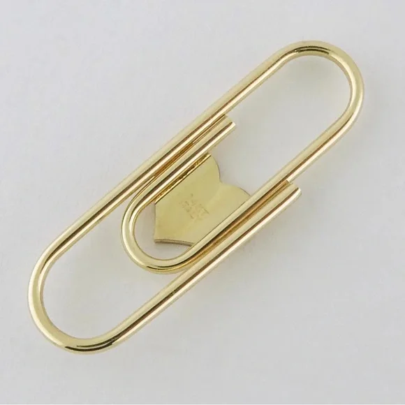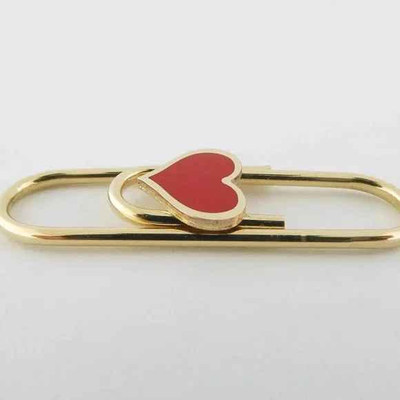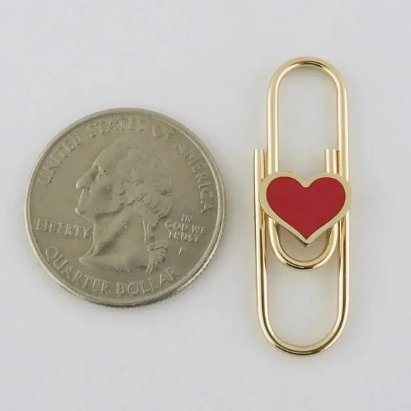 Solid (not plated) 14K Yellow Gold Paperclip Charm Holders or Chain ExtendersFun and festive paperclip perfect for displaying multiple charms at once or extending your favorite chain Paperclip works exactly as the standard office paperclip and has not clasp, simply slide your charms over the wirePaperclip decorated with a Heart motif inlaid with red reconstituted coral Stamped: "14KT", "Italy"Condition: Excellent. No damages. New without tag. Retail store item, Light surface wear from handlingDimensions: 1 3/8" (35mm) long, 7/16" (11mm) wide at center, 1.9 gramsSturdy construction, approx. 1.5mm tube style core**Charms and chain shown for demonstration and are NOT included. Listing for Paperclip charm holder ONLY** ~~~~~~~~~~~~~~~~~~~~~~~~~~~Follow me on Instagram @jewelmanity for new fine jewelry arrivals, the latest updates, newest acquisitions and videos~~~~~~~~~~~~~~~~~~~~~~~~~~~~