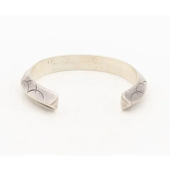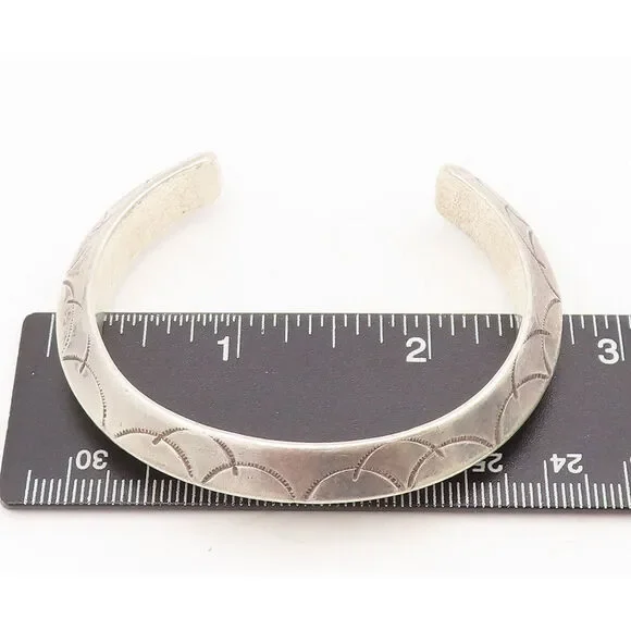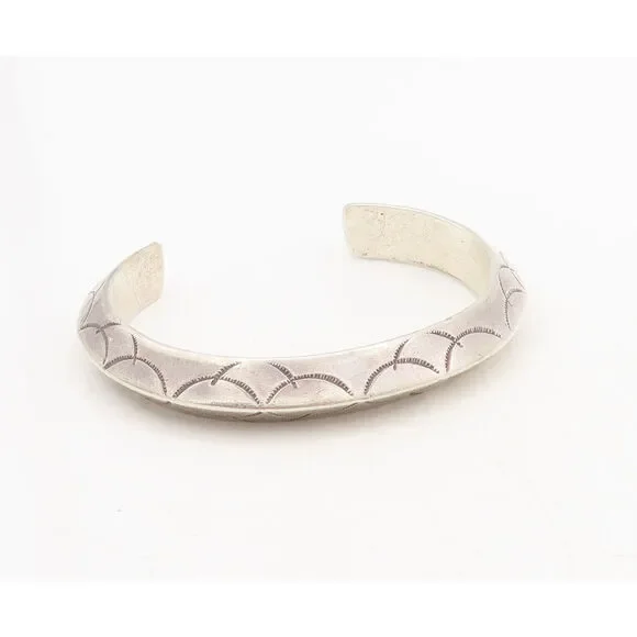 925 Sterling Silver Vintage Bracelet NAVAJO ZUNI Etched Arc Design Cuff BT10215