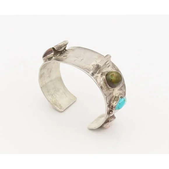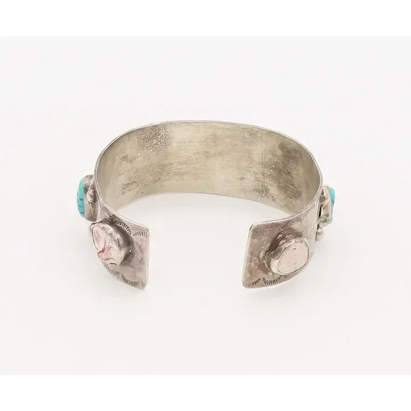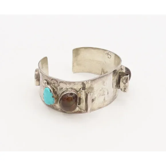 ZUNI NAVAJO 925 Silver Vintage Modernist Opal Turquoise Cuff Bracelet BT10011