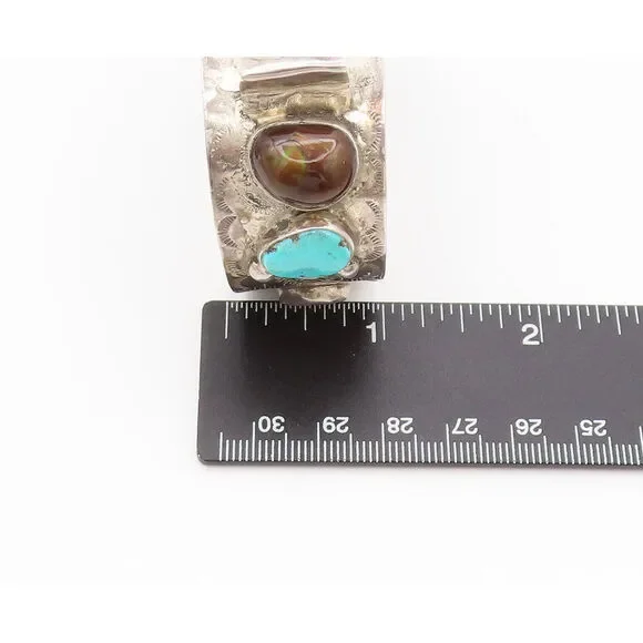 Jewelry Type:BraceletMetal Type:925 SilverMetal Size:6.5" x 2" x 1"Stone Type:Opal, Turquoise Condition:N/AJewelry Weight:52.25 Grams