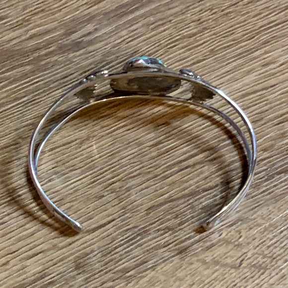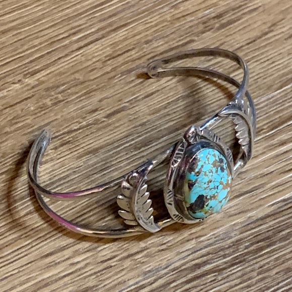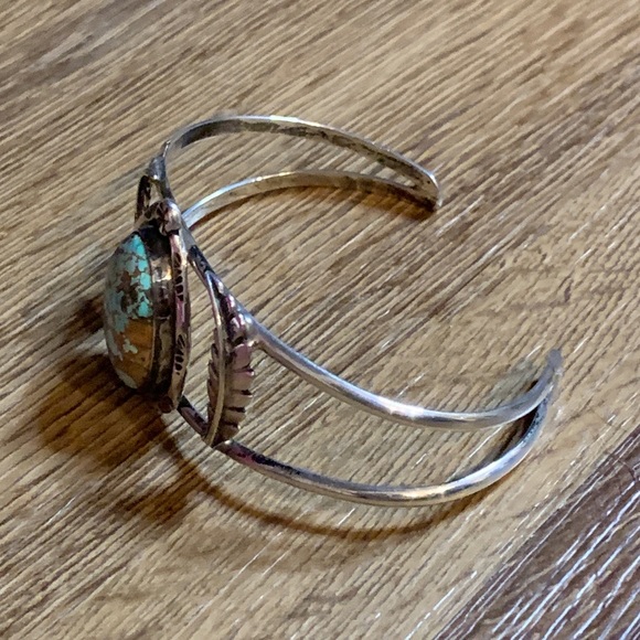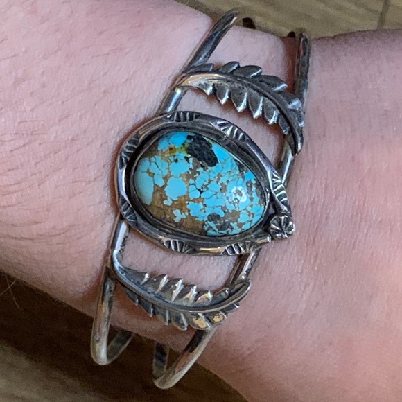 Gorgeous Turquoise gemstone in this vintage sterling silver Navajo cuff bracelet. Offers encouraged!