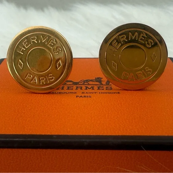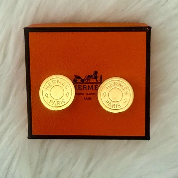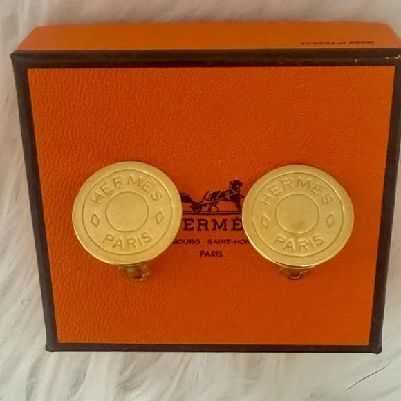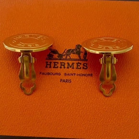 HERMÉS Clou De Selle Clip On Gold Tone Earrings