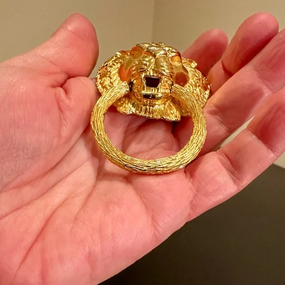 Authentic Runway Vintage Retro Luxury Kenneth Jay Lane Lion Door Knocker Brooch