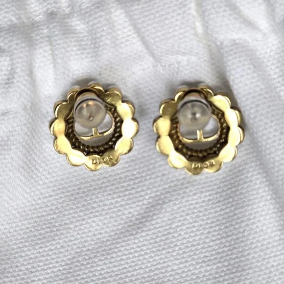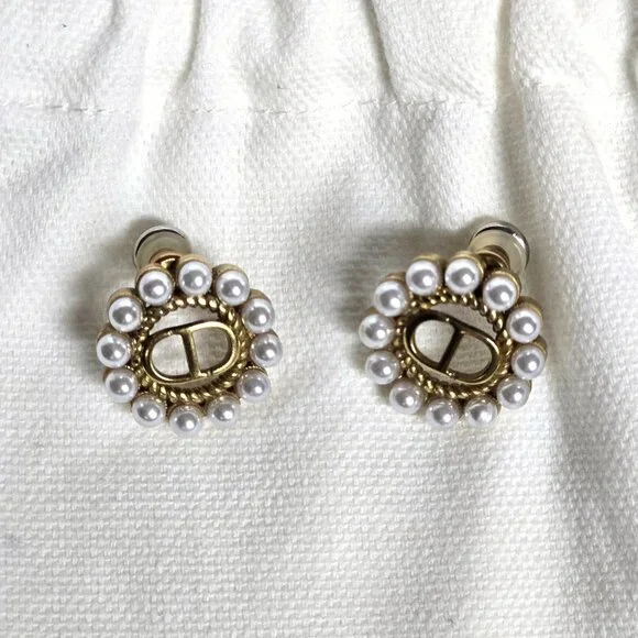 Dior Petit CD Baroque Stud Earrings with Pearls & CD Logo Rare & Authentic