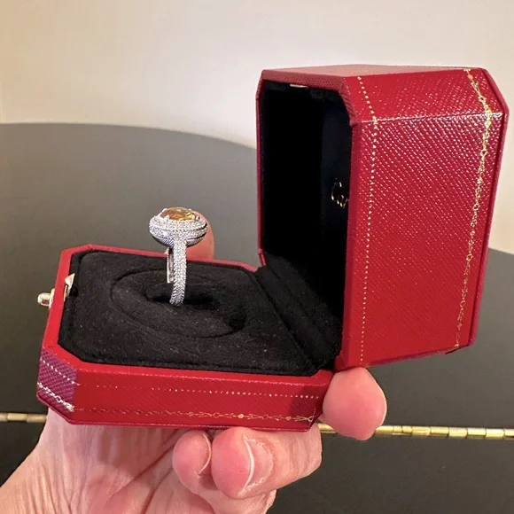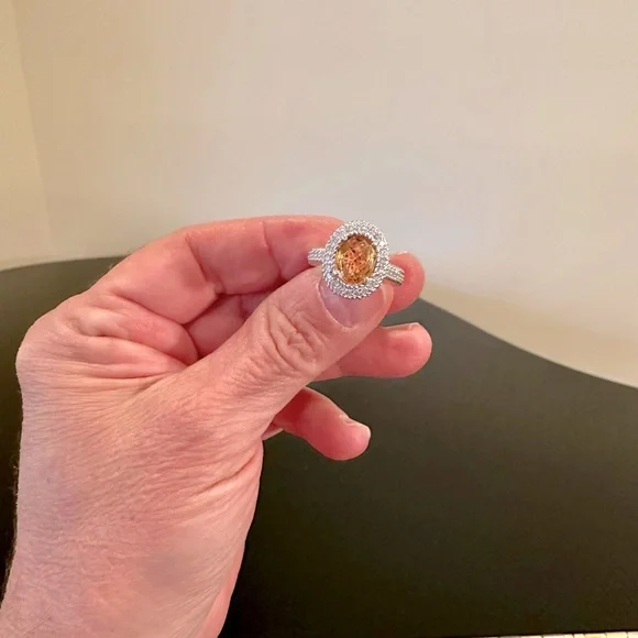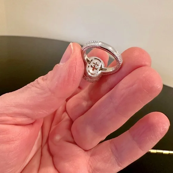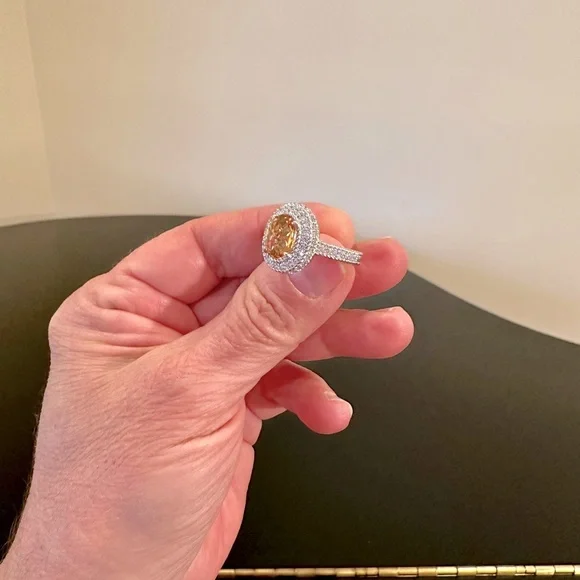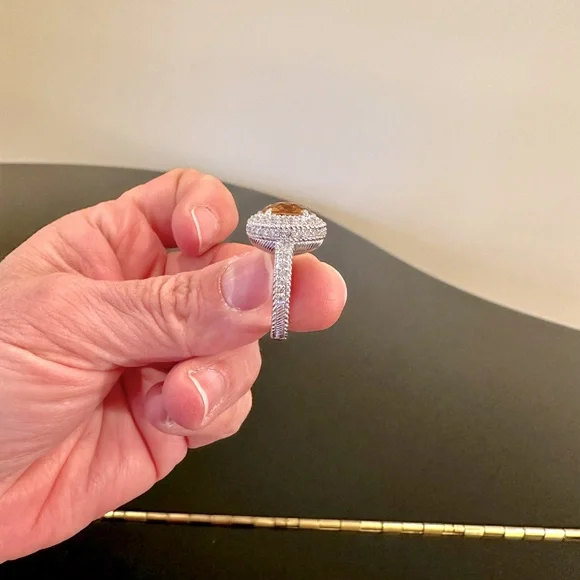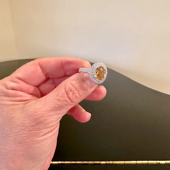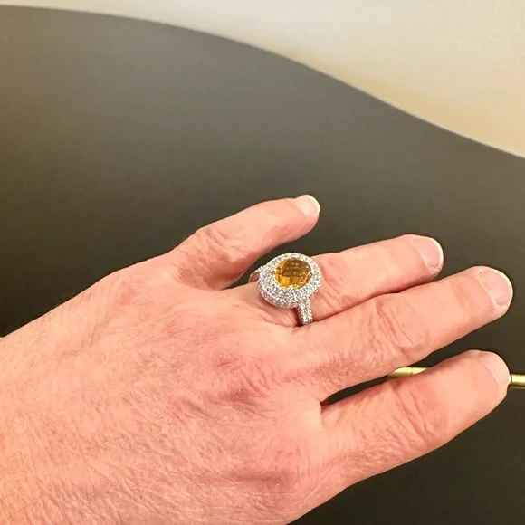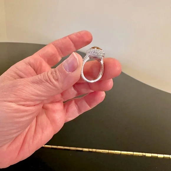 Judith Ripka Vintage Retro Designer Couture RARE Authentic Formal Sterling Silver Citrine diamonique ring-stunning Judith Ripka ring featuring a beautiful substantial genuine oval checkerboard faceted citrine, surrounded by sparkling diamonique stones, another row of sparkling diamonique stones around side of ring, diamonique stones on shank, rope & textured detail, WOWhad to test diamoniques to make sure not diamonds-ring combines exquisite color w/maximum glam, when you want a gorgeous couture look, great addition to any jewelry collection, perfect w/your spring & summer outfits, for wedding, bridal shower…looks like high end expensive ring-rhodium plated sterling silver,have not seen vintage JR pieces tarnish, very well made-inside ring finished beautifully, JUDITH RIPKA 925 CZ THAILAND embossed inside-top of ring where citrine setting is little under .75" x little over .5"-using my ring sizer it´s between size 6.5 to size 7-in excellent vintage condition-Cartier ring box not included-will include more than one nice gift w/purchase, check out my reviews-SOLD OUT ONLINE & IN STORES, RARE-look at pics & video as help describe item, video shows how beautiful this ring is-other listings:David Yurman, Ferragamo, , , Zara, Kendra Scott, Anthropologie, Kate Spade, Zac Posen,Ray-Ban, Cartier, Tory Burch, Burberry, Alexander McQueen, Julie Vos,Ted Baker, Free People, Tiffany & Co., Louis Vuitton, Marc Jacobs, BCBGMAXAZRIA, St. John, ESCADA, Lululemon