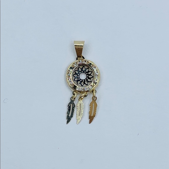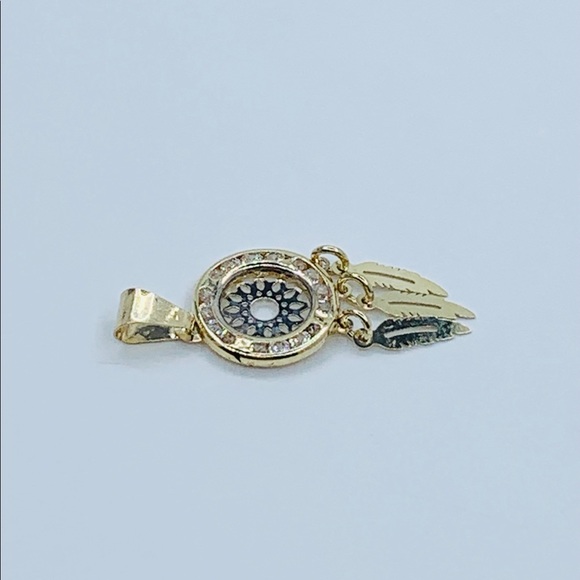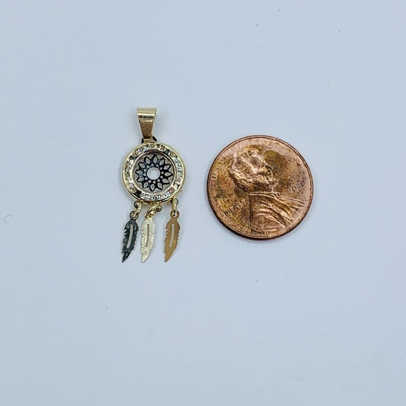 Real 10k Gold Small Dreamcatcher Charm & Box Necklace 18”Indian Feather Pendant Charm Dainty Delicate Small Charm Circle with Native Indian Feathers & Necklave Necklace 18” long Charm 22mm White Cubic ZirconiaPendiente de atrapa sueños con Cadena de 18”