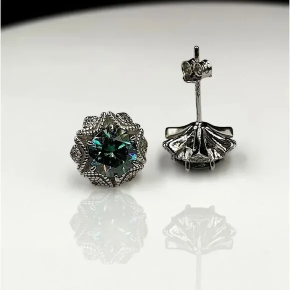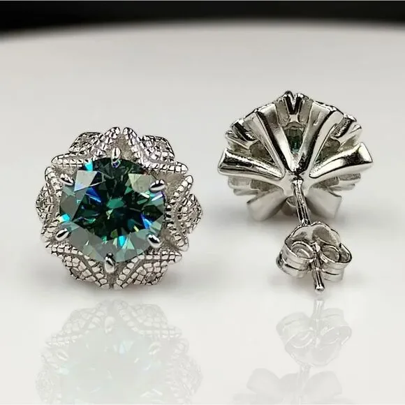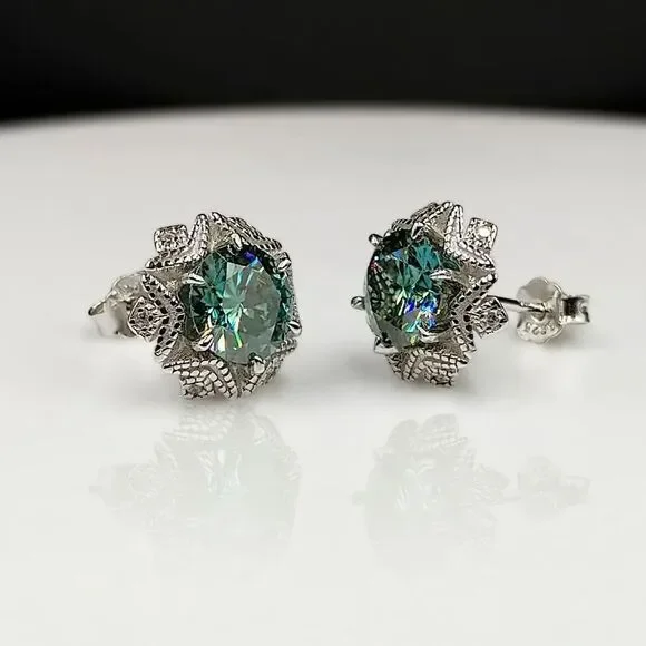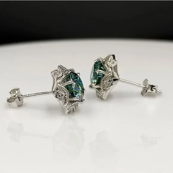 Certified 2ct Blue Green Moissanite Luxury Stud Earrings