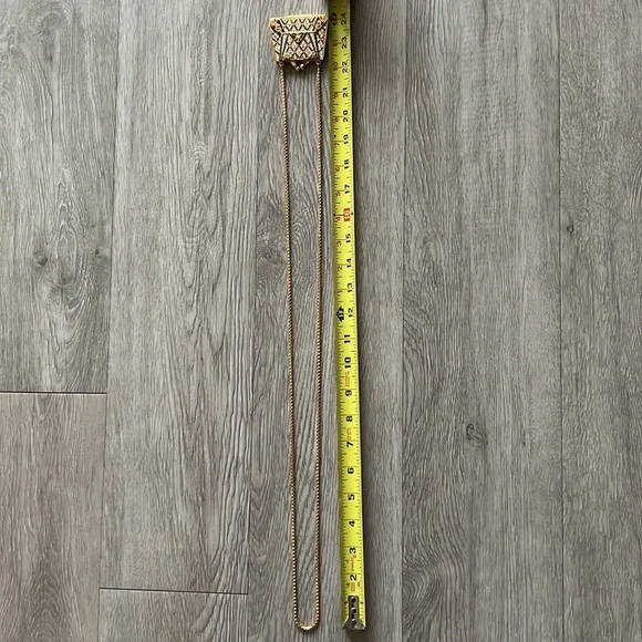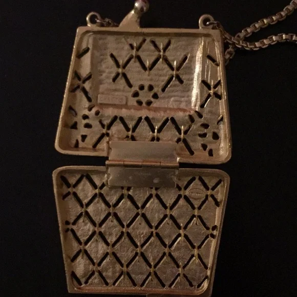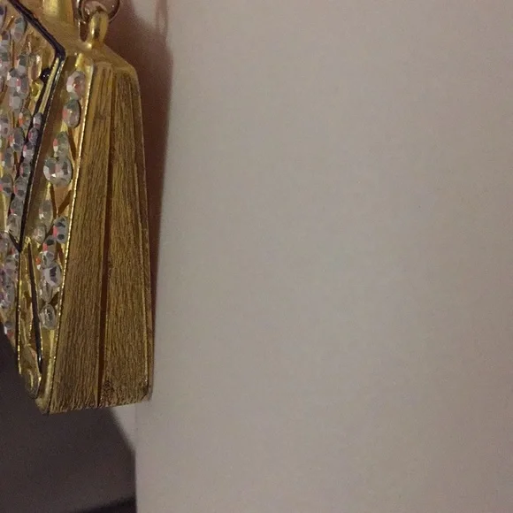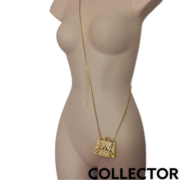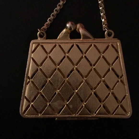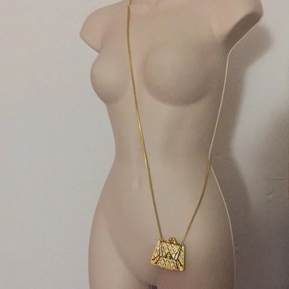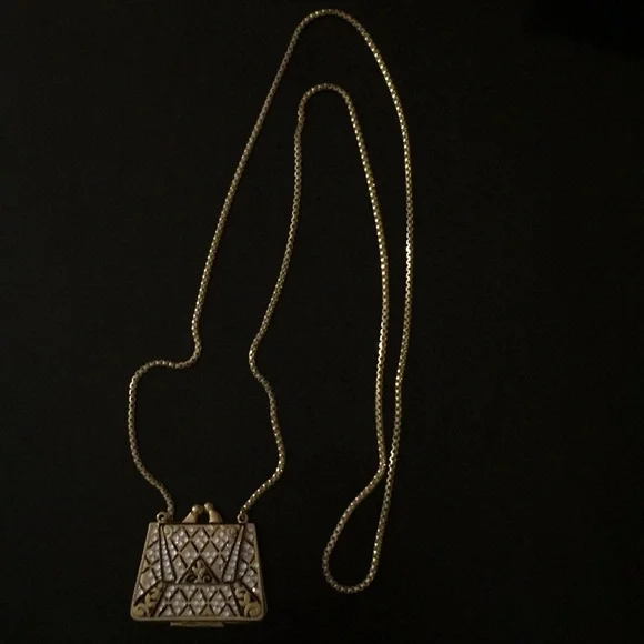 CRAFT Intricate gold-toned deco detailing with a kiss latch at top. Nice black enamel and crystals in the design. Can be worn as a necklace or as a crossbody purse. Can hold a few bucks or some coins! Beautiful 24" long square chain detailing. Purse part is 1.75 highx a bit more than 2.25 wide. 1 owner. From my mom´s boutique in Philadelphia.