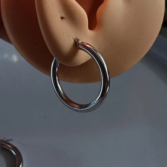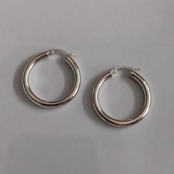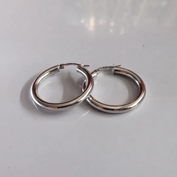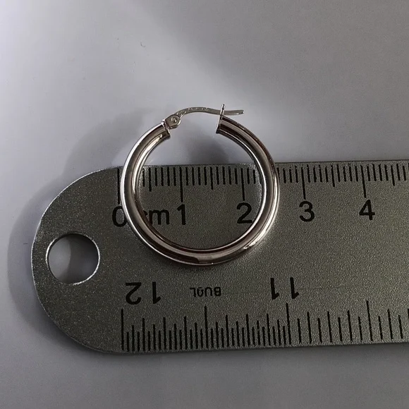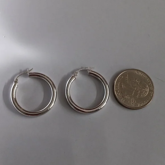 18K White Gold Chunky Hoop Loop Earrings 25mm Quarter Size Lightweight New
