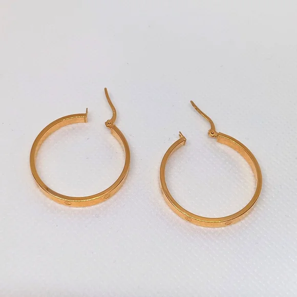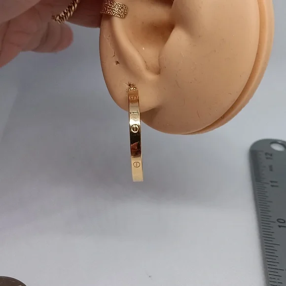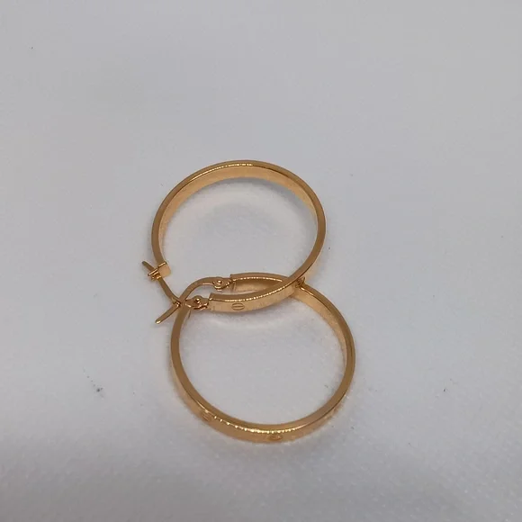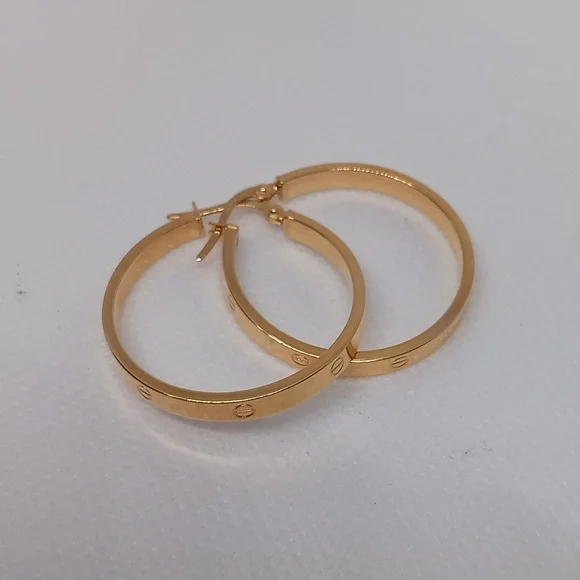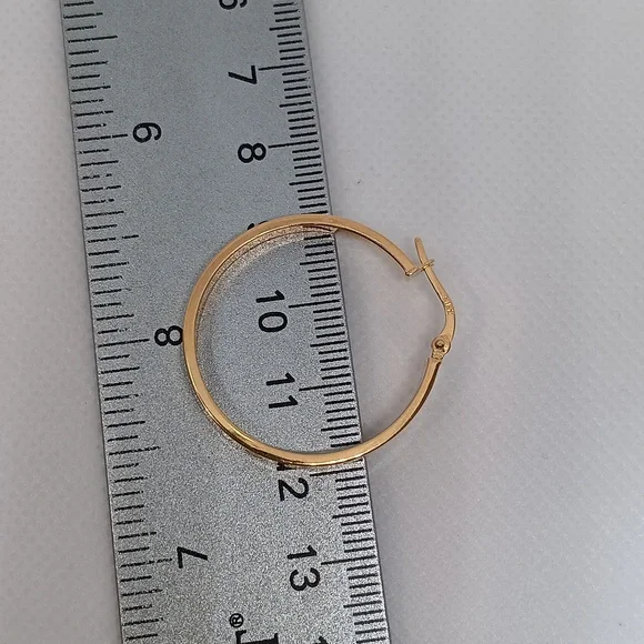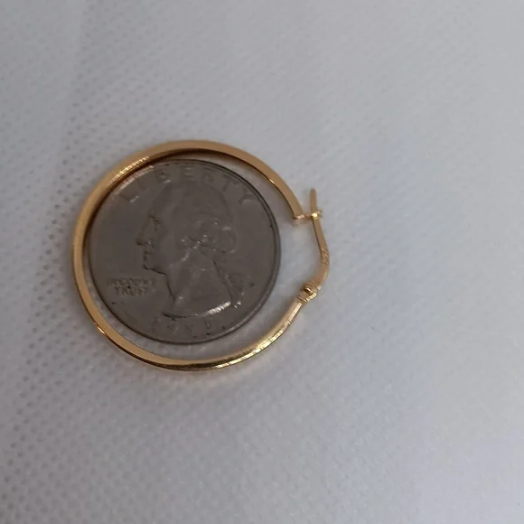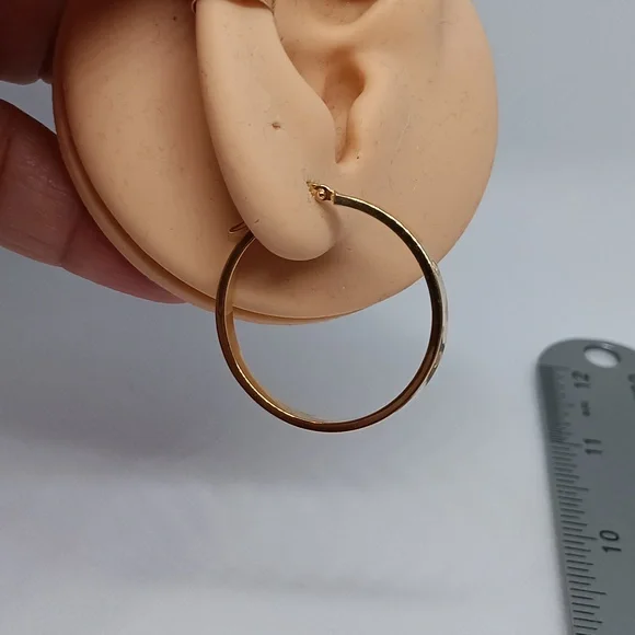 18K Yellow Gold Hoop Loop Earrings 30mm Lightweight Clip NEW K18 Japan Gold