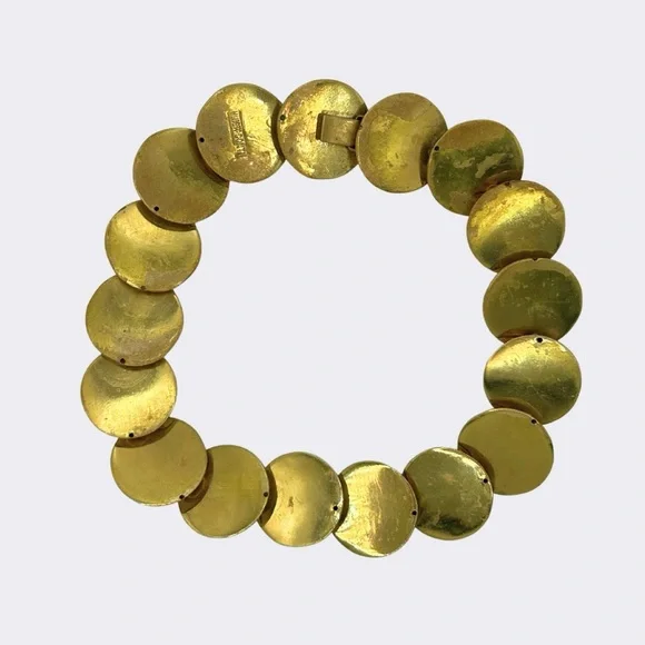 Experience the allure of the 1970s with our Retro Revival Medallion Necklace. Chic and cool, this stylish piece adds a touch of vintage glamour to any outfit. Inspired by the past, it´s the perfect accessory to elevate your look with a hint of nostalgia.Era: 1970sMade: Undetermined; SignedStyle: Retro Revival Medallion NecklaceColor: Gold/ BrassRating: 10/10Content: MetalCleaning + Care: Wipe Clean