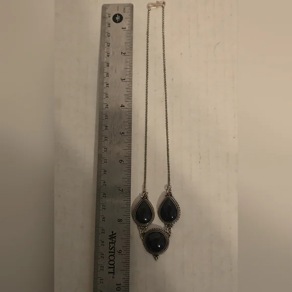 925 Sterling silver black onyx three stone necklace. The artist´s hallmark (BA) is unknown. "Sterling" is stamped on the backside of this pieceNecklace and pendants 925pre-owned very nice conditionall jewelry and watches are OBO and sold as is