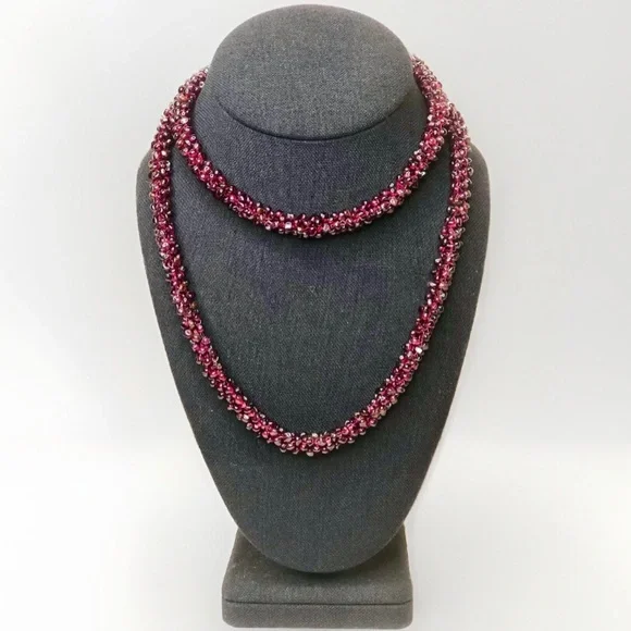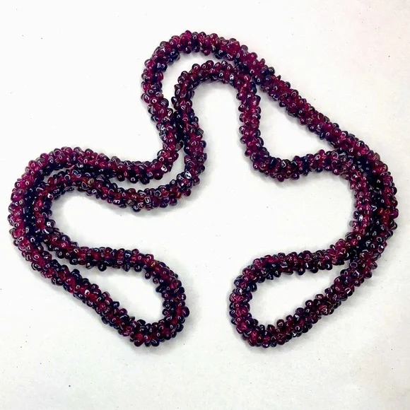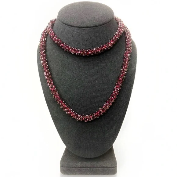 Red Garnet Gemstone Rhodolite Pyrope Cluster Necklace 32 inches Long