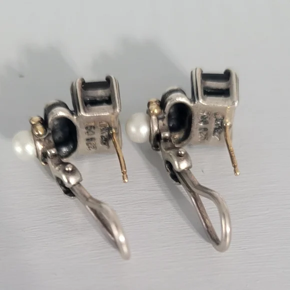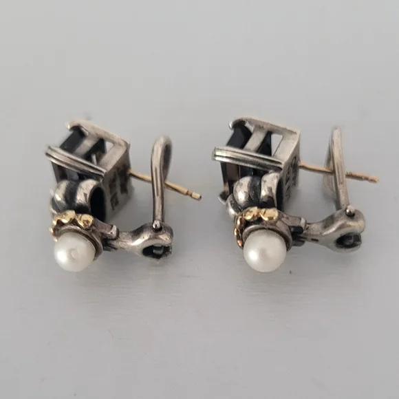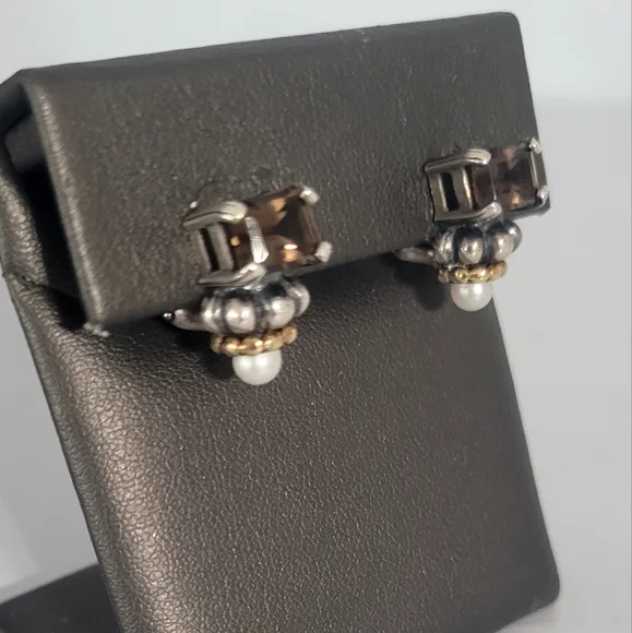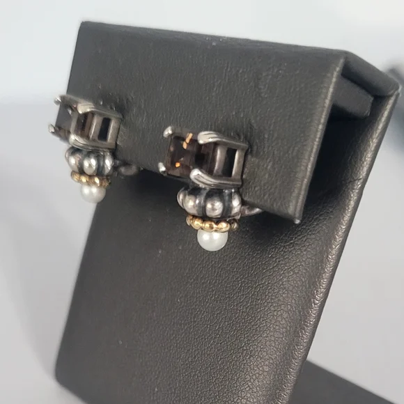 Beautiful LAGOS Two-Tone Smoky Topaz & Pearl Earrings