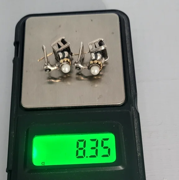 Sterling Silver 18K Yellow Gold Smoky Topaz and Cultured Pearls14K Gold posts with leverback Marked Caviar 750 925 More details in pictures Very good vintage condition
