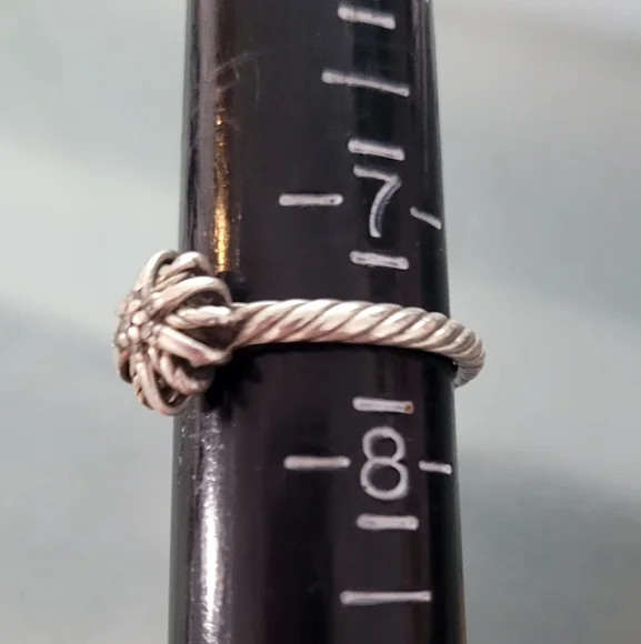 David Yurman Mini Starburst Ring with Diamond inCenterSize 7.5Band 2.4mmOrnament 9.7mm roundMetal Type: Sterling SilverMarks: 925, Designer SignatureTotal Item Weight 3.3 gramsDiamond Carat Weight 0.04Good pre-owned condition