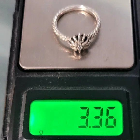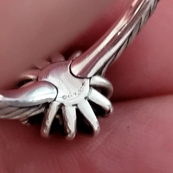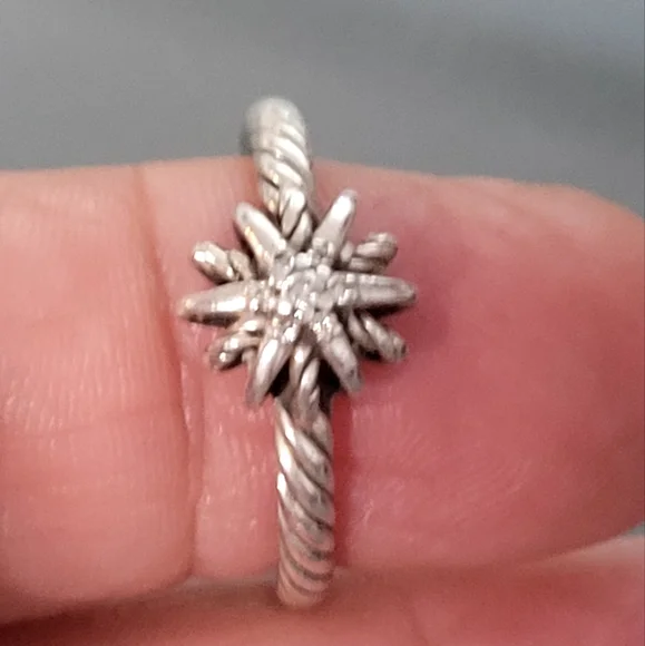 David Yurman Mini Starburst Ring with Diamond inCenterSize 7.5Band 2.4mmOrnament 9.7mm roundMetal Type: Sterling SilverMarks: 925, Designer SignatureTotal Item Weight 3.3...