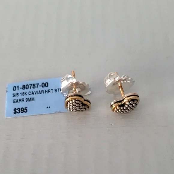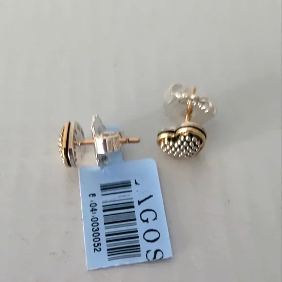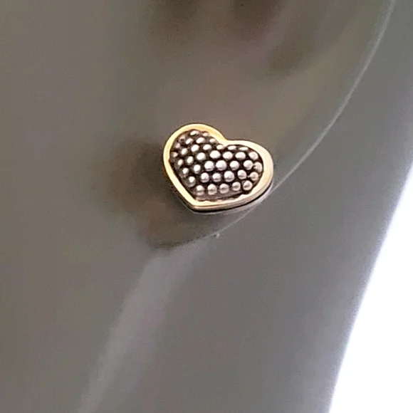 Sterling Silver 18K Yellow Gold Caviar Heart StudsMarked 925 750,Lagos585 Gold posts10mm wide, 8mm high New with tag Generic box