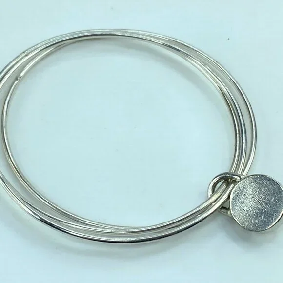 Tiffany & Co Sterling Silver 1837 Round Padlock Triple bangles 8" JR678