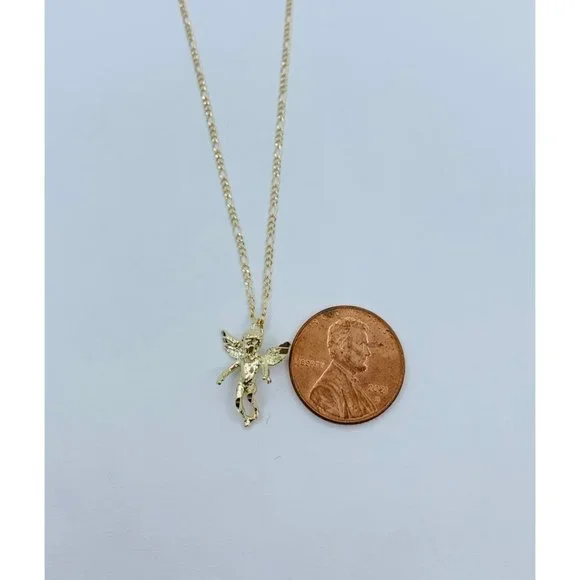 ❤️ 10k gold pendant Angel and necklace ❤️ Angel Approx 15mm long ❤️ dainty yellow gold Figaro necklace 18” long & 1.5mm wide❤️ Angel❤️ New fine jewelry...